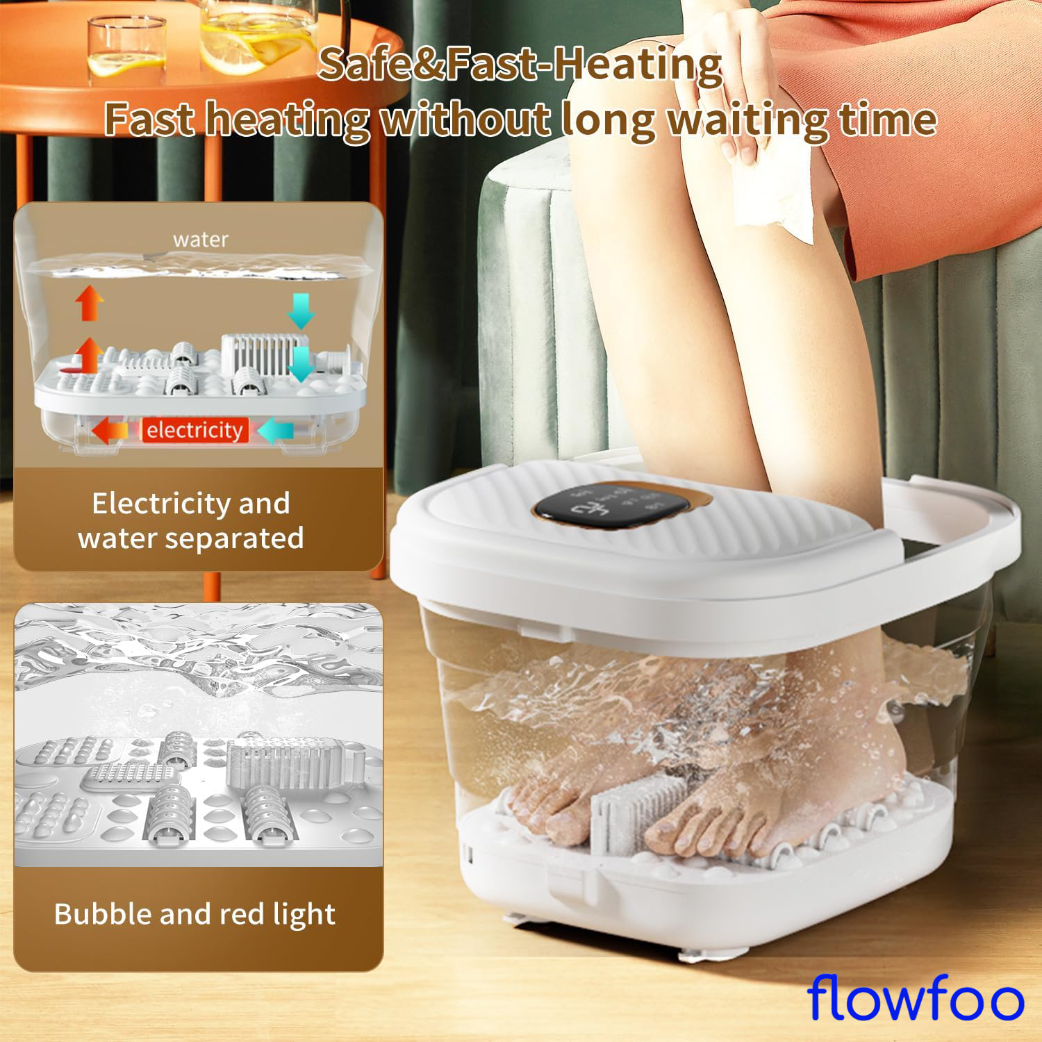 - Timed Sessions for Convenience –A timing function of foldable foot spa massager to help you enjoy your foot bath better . Before you start using foot massager,Set a timer for your foot soak tub, Perfect for busy individuals who want to control the duration of their relaxation time,Enjoy foldable foot spa more efficiently.